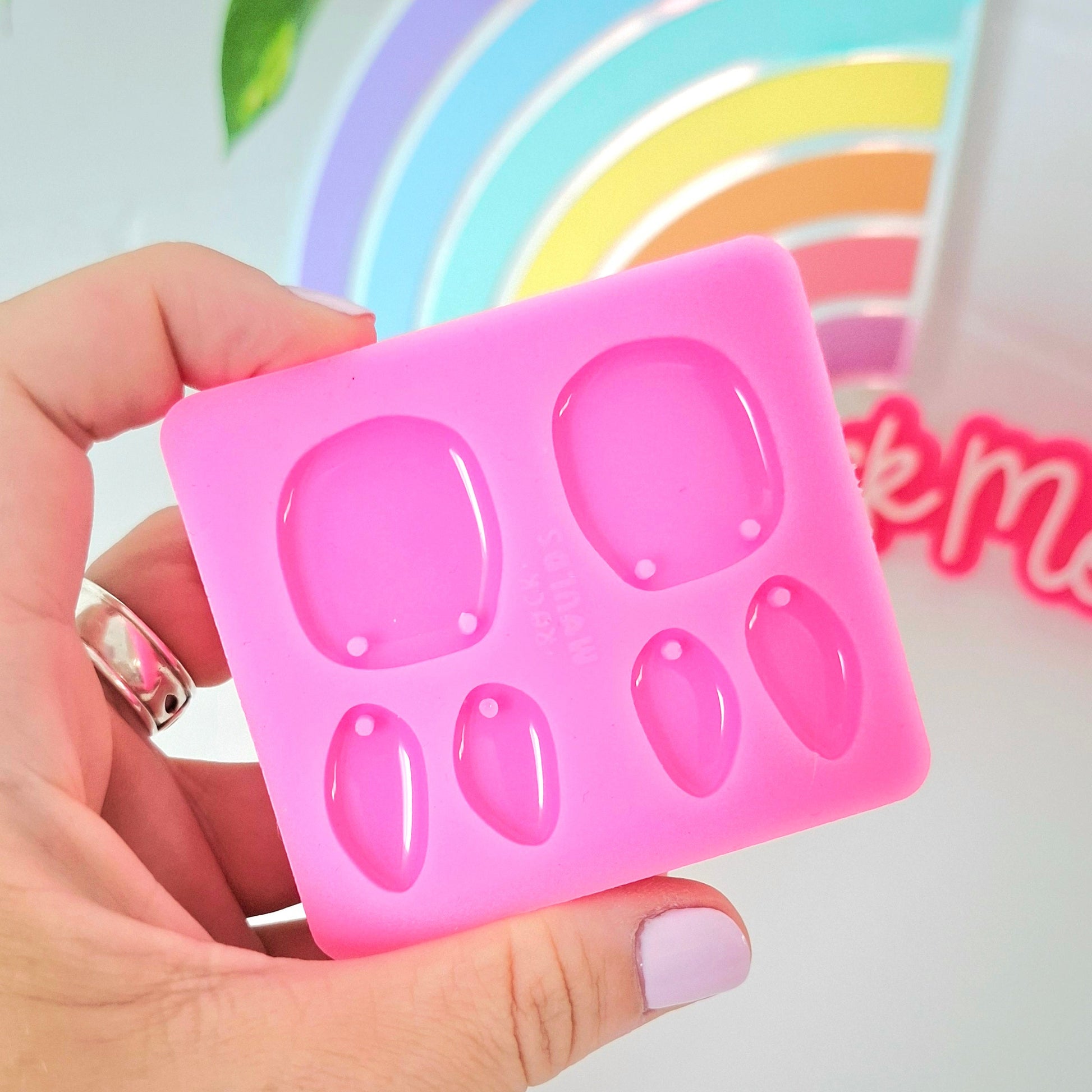 This mould has hanging holes so no drilling is required. Cast pieces will have a domed/ glossy finish.
